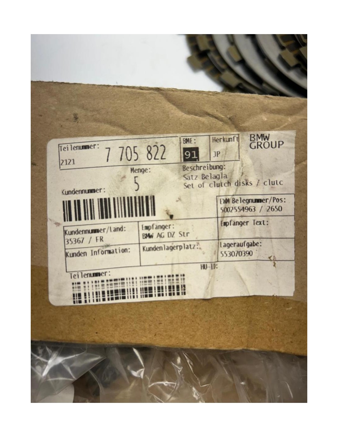 Disque d'embrayage lisse et garnis origine BMW